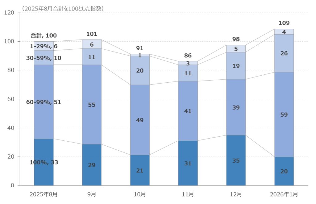 2ヵ月連続で+10%以上の大幅増であり、2025年8月の集計開始以来、最も活況な状況となっています。